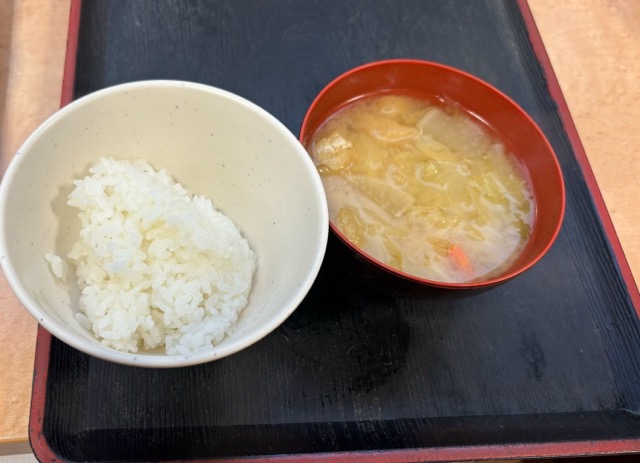 ご飯と具沢山お味噌汁はセルフで好きな量を取るタイプ。