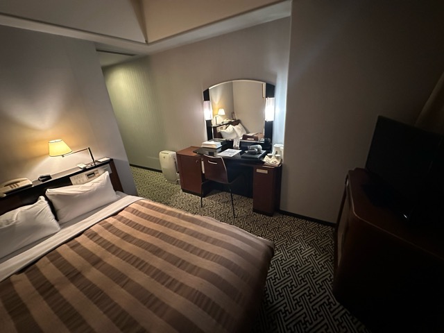 部屋も立派。なんとなくダブル的なあしらい、枕やタオルなど2セットあった。
