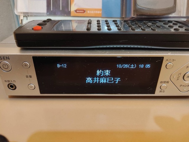 部屋に有線放送の機械あり。点けてみると高井麻巳子が歌っていた。
