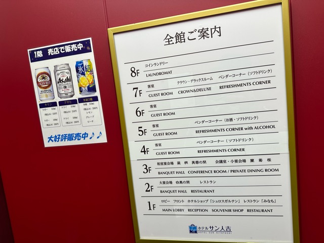 1階ロビー、めちゃ広いのかと思いきや、鏡か。