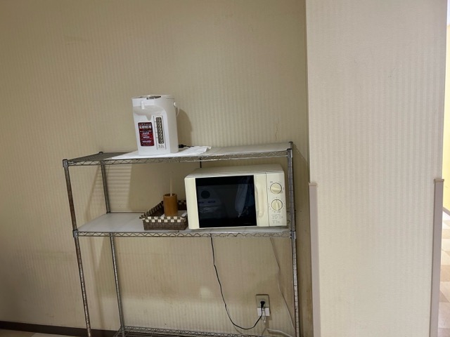 お部屋にはポットがない。各階エレベーターホールにポットとレンジがあるので、