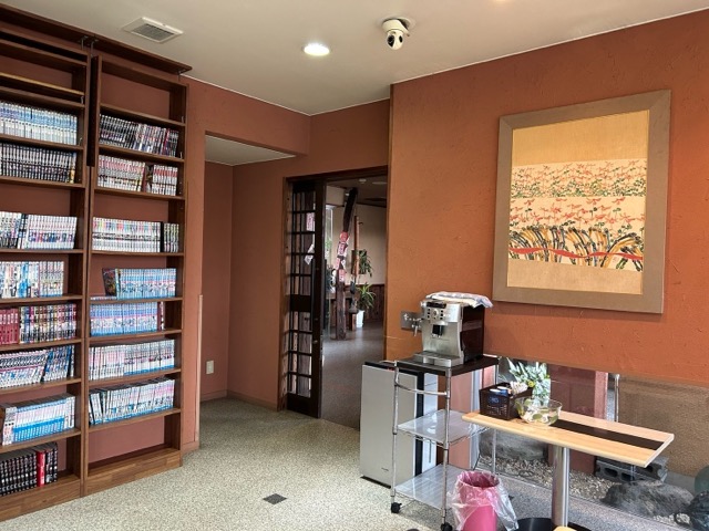 フロント横には漫画の棚。
