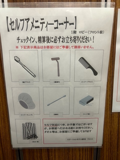 お部屋にはアメニティないので持って行く必要あり。歯ブラシもお部屋にはない。