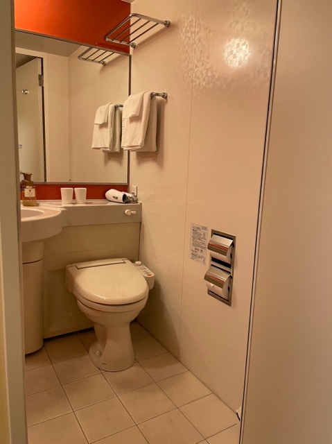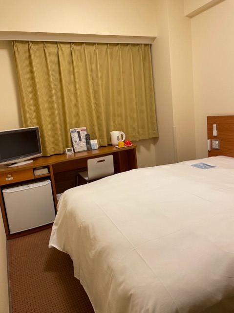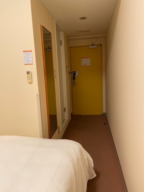 部屋は畳張り、ベットも低い。正直少し狭い感じがするかな。
