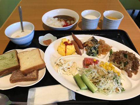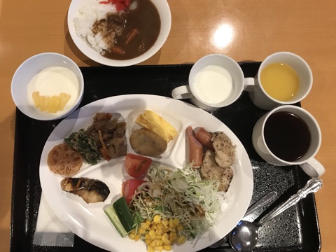 朝食は、B1の和食か1Fのバイキングを選ぶ。